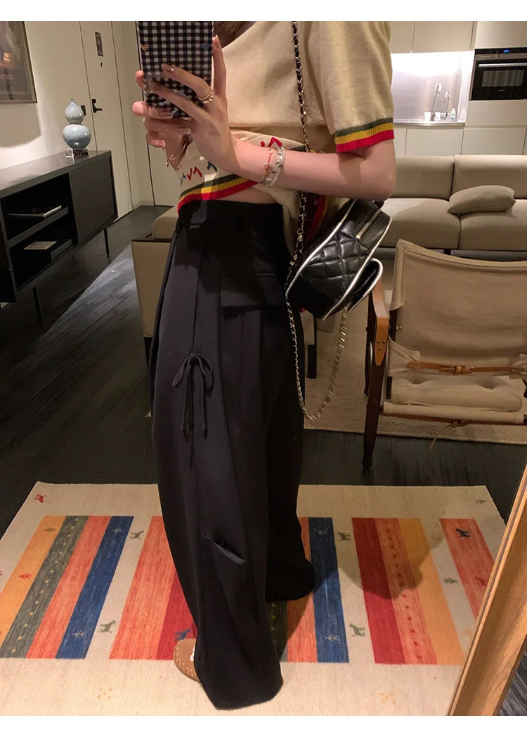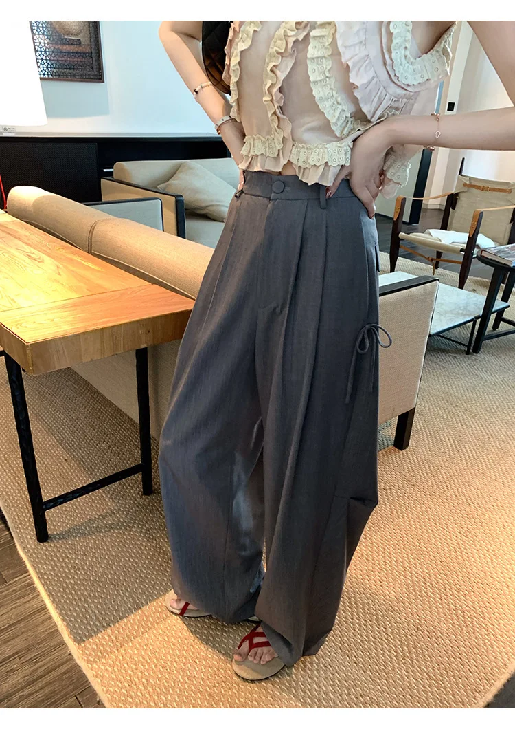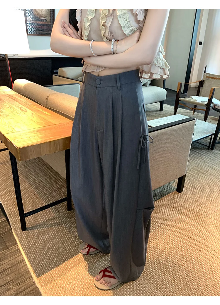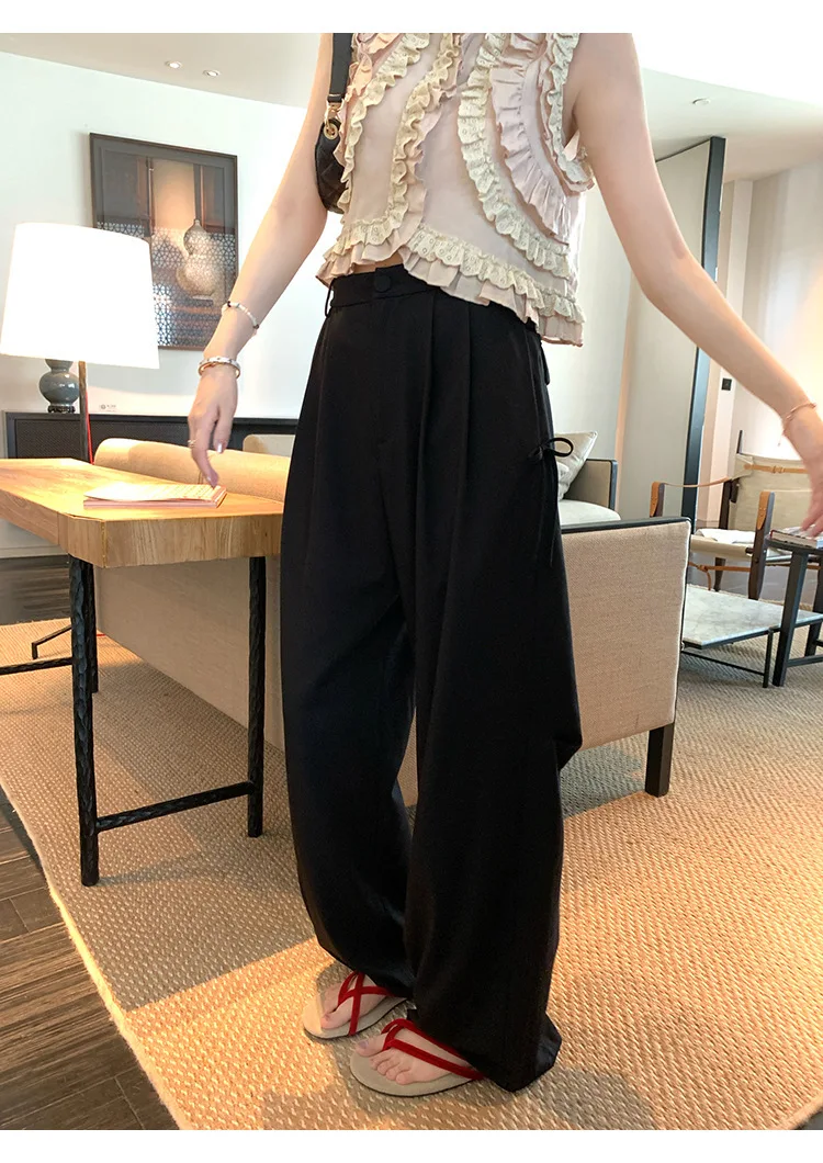 Summer Casual Workwear Pants Good Fit Stand Collar Long Trousers Comfortable Loose Fit Straight Leg Style Female Clothing